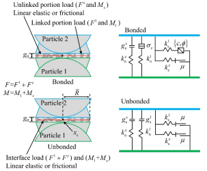 图5 含连结物质裂纹接触模型行为和流变成分