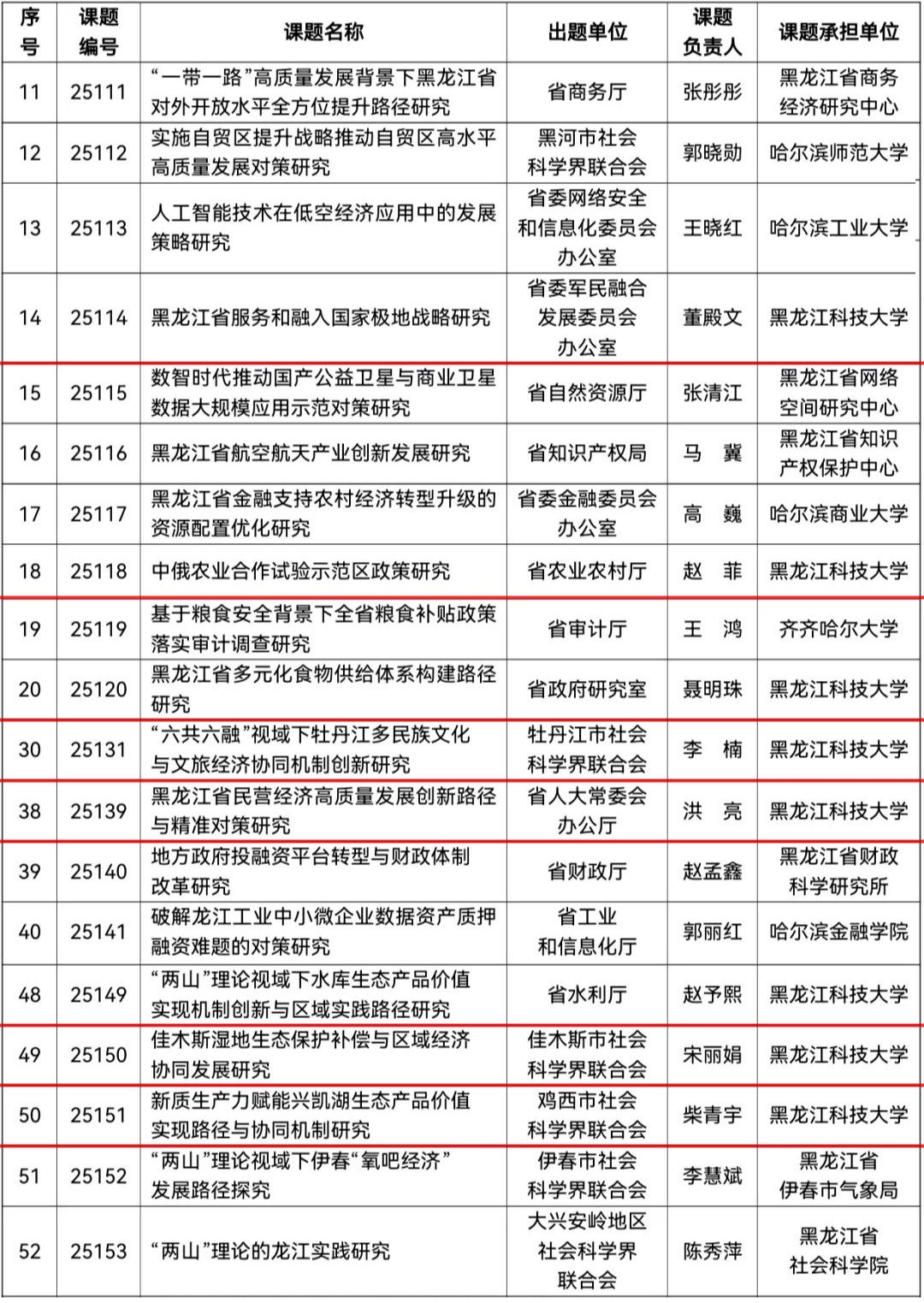 近日,黑龙江省社会科学界联合会公布了2025年度黑龙江省经济社会发展重点研究课题中标名单,幻影手机官方网站_幻影(中国)管理学院洪亮、董殿文、赵菲、赵予熙、宋丽娟、柴青宇,经济学院聂明珠,人文社会科学学院李楠共获批8项课题,占全省获批总数的13.6%,实现历史性突破。