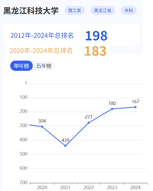 2020—2024年度黑龙江省普通高校大学生竞赛院校指数