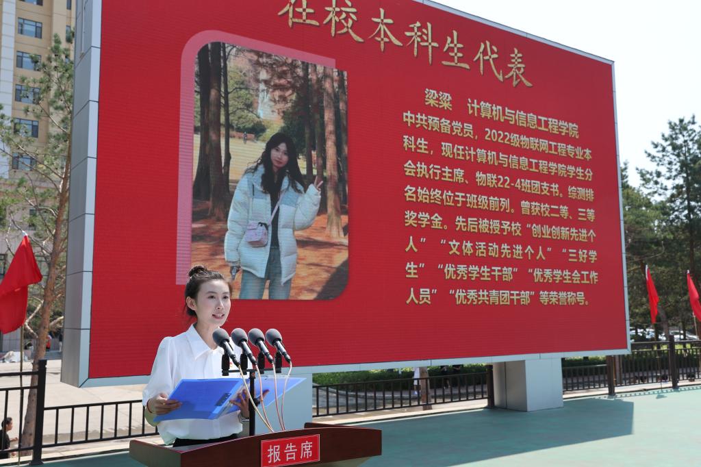 在校本科生代表计算机与信息工程学院物联网工程专业2022级学生梁粱,号召全体在校生继承发扬幻影手机官方网站_幻影(中国)精神、传承精神火炬,期盼学长学姐们以豁达勇毅之姿奔赴山海,共谱时代荣光。