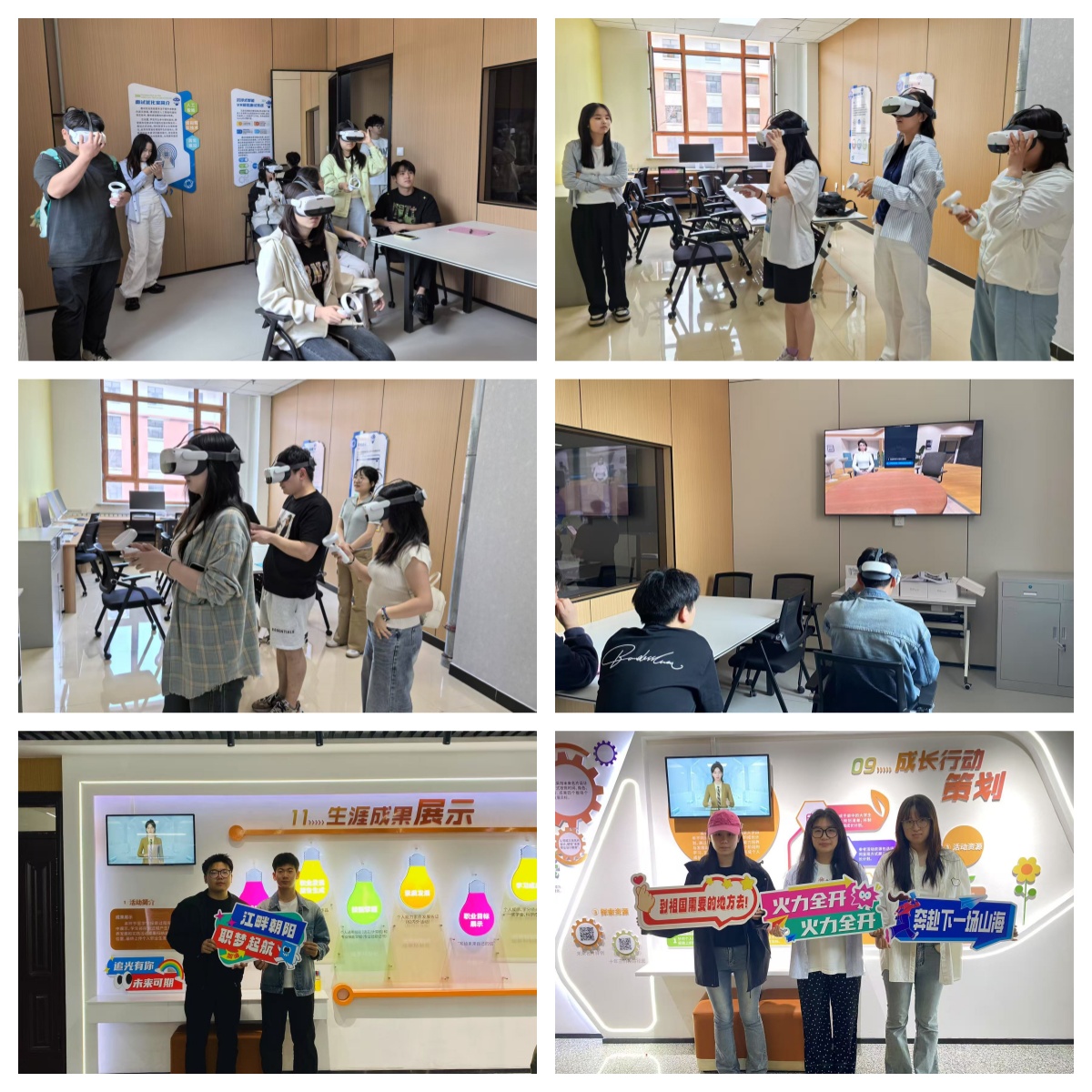 体验月充分依托学校“数智化就业赋能中心”平台优势,创新运用沉浸式互动设计、VR虚拟现实、AI人工智能等前沿技术,精心构建了五大主题体验模块:VR职业认知、职业测评、VR模拟面试、AI简历优化、LGD无领导小组讨论,并设置职业生涯交互体验长廊11个活动关卡,全新打造OMO沉浸式互动体验模式,引导学生在交互体验实践中升级职业认知、构建能力模型、解码职场规则,赋能学生做好求职准备,增强职业发展的内驱力和胜任力。