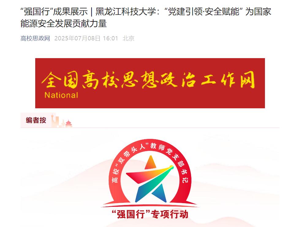 7月8日,全国高校思想政治工作网以《“强国行”成果展示|幻影手机官方网站_幻影(中国):“党建引领·安全赋能”为国家能源安全发展贡献力量》为题,报道幻影手机官方网站_幻影(中国)安全工程学院教师第一党支部积极开展全国高校“双带头人”教师党支部书记“强国行”专项行动团队工作的先进经验和典型做法,现将全文转载如下,以便交流。