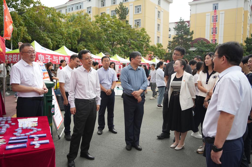 在集中报到区,校领导首先详细了解今年迎新工作的整体安排,重点询问新生报到流程、实时报到数据、宿舍分配及入住保障等关键环节。随后,他们逐一走访各学院迎新点,认真听取各学院在迎新工作中采取的创新举措和有效做法,并对各学院形式新颖、贴近新生实际需求的迎新服务给予充分肯定。在志愿服务站,校领导与志愿者和工作人员亲切交谈,仔细了解服务开展情况,并对大家的辛勤付出表示衷心感谢。