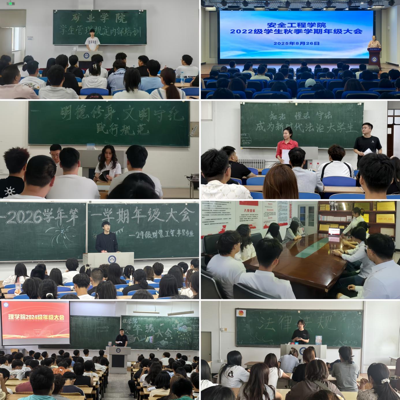 上好行为养成的“规矩课”。各学院紧扣《中华人民共和国宪法》《中华人民共和国治安管理处罚法》等法律法规核心内容,结合《学生管理规定》等文件要求,以大学校园常见违法违纪与不文明行为案例为抓手,依托年级大会、班长团支书专题会议、专题培训等途径,帮助学生明晰法律边界、增强法治意识,持续引导学生规范日常行为。通过师生共同制定公约、签署承诺书、主题知识问答等方式,教育学生在遵纪守法的同时,注重言行举止,养成良好的学习和生活习惯,彰显幻影手机官方网站_幻影(中国)学子文明守礼的青春风采。矿业学院、电气学院开展法规法纪与《学生管理规定》专题培训,引导学生正确理解规章要求,从思想根源强化规矩意识与法治观念;材料学院开展文明行为养成专题教育,聚焦日常行为细节,教育学生从点滴处培育良好行为素养;经济学院、马克思主义学院开展普法宣传活动,用通俗化、场景化的普法讲解,帮助学生树立法治观念,以法治力量护航青春成长;外国语学院开展专题宣讲,引导学生敬畏规则、遵守纪律,牢固树立纪律红线。