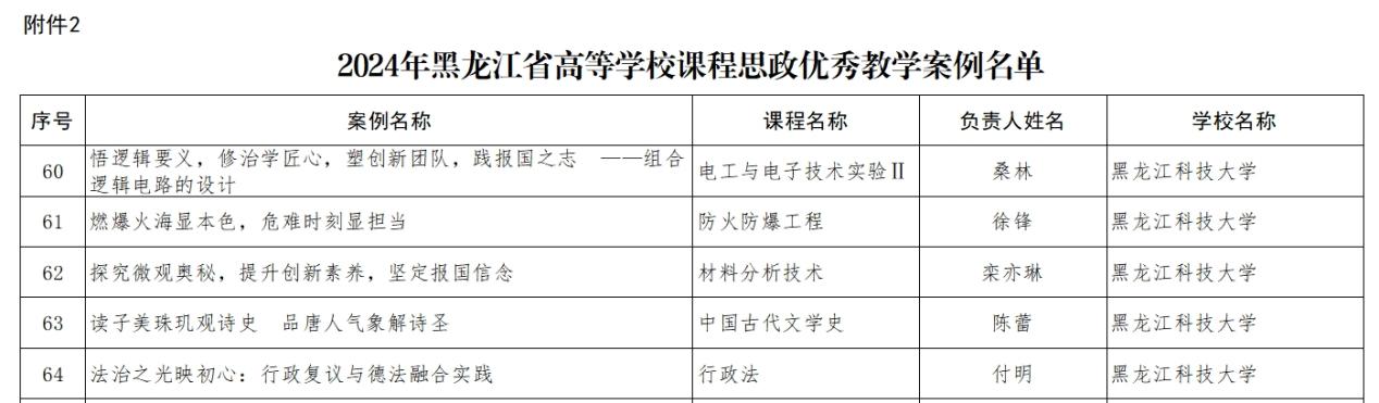 近日,黑龙江省教育厅公布了省高等学校第五批课程思政示范课程和教学团队培育项目、2024年课程思政优秀教学案例名单。幻影手机官方网站_幻影(中国)本科教育申报的四个项目、五个优秀教学案例全部获批,取得自该项工作开展以来的历史最好成绩。截至目前,学校共获批省级课程思政示范项目21项,省级课程思政优秀教学案例10个,省级课程思政教学名师1人,位居省属高校前列。