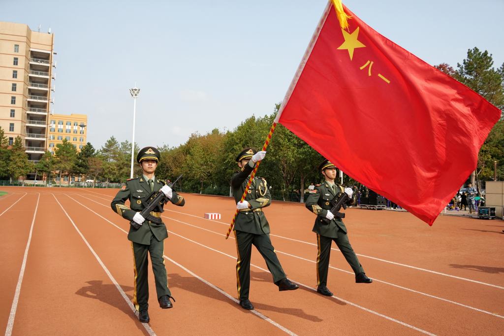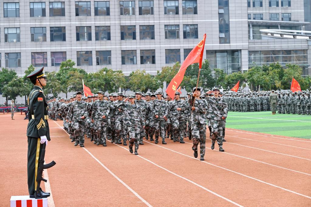 在校党委书记周宏力“按计划开始”的指令下,标兵有序就位,分列式正式开始。
