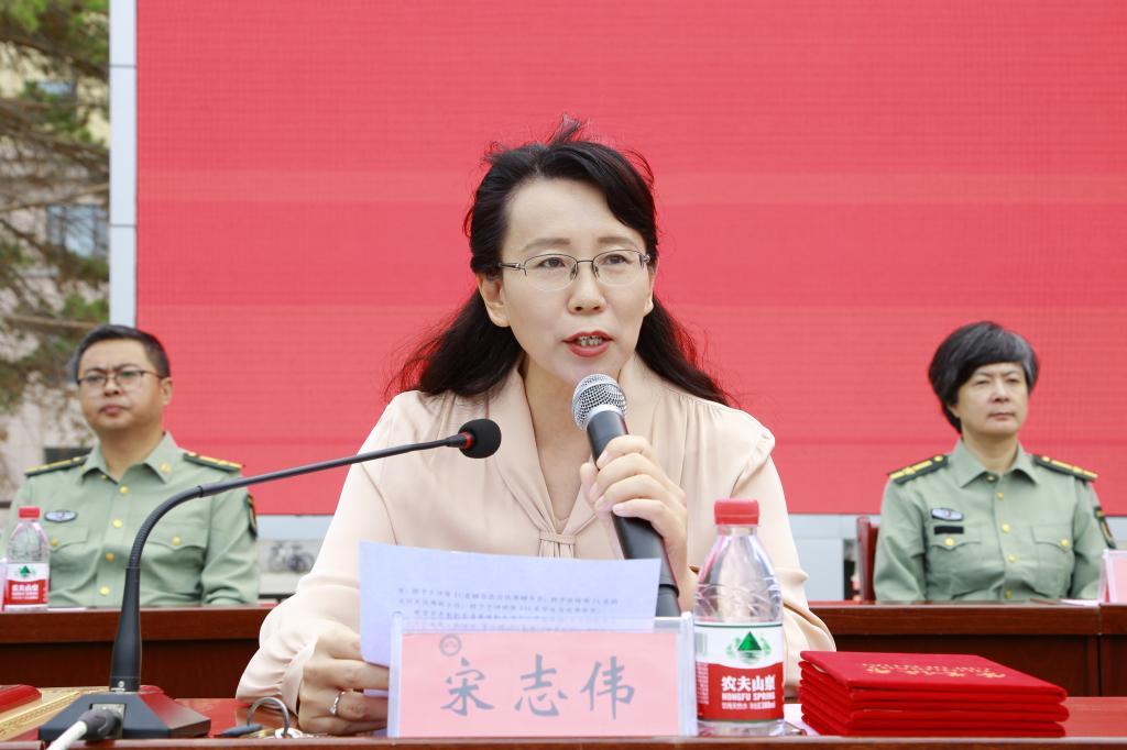 校党委书记周宏力代表学校向承训单位赠授锦旗。