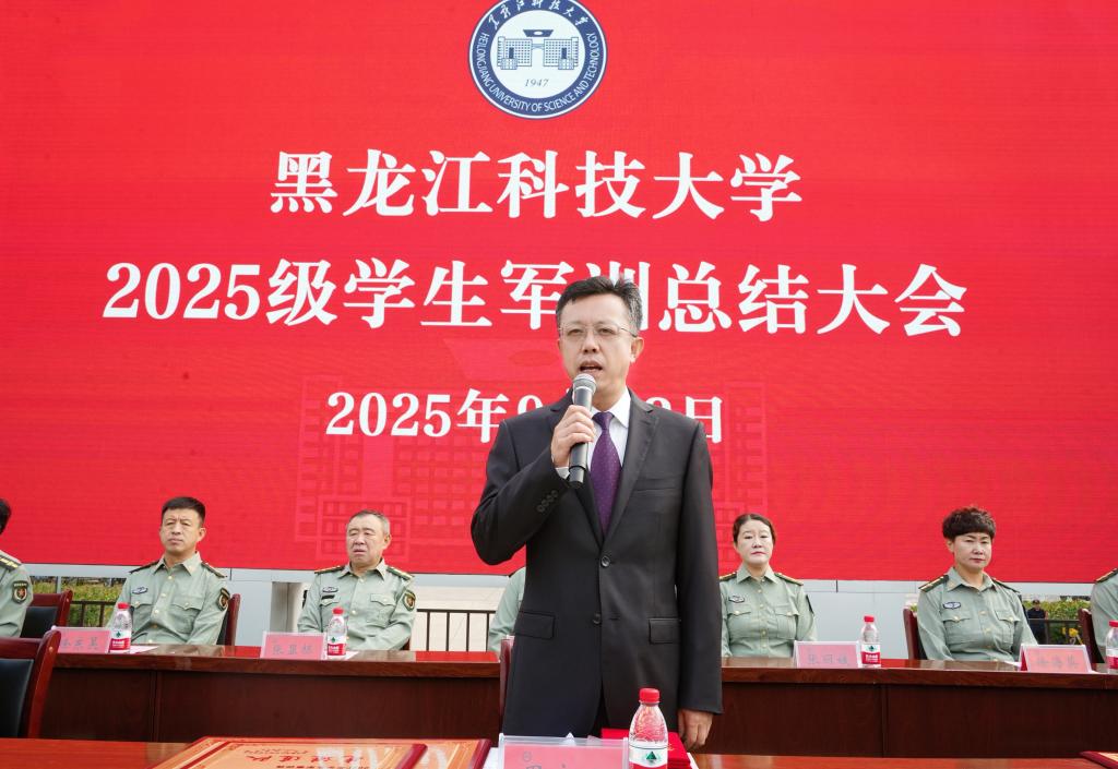 校军训旅旅长邬承斌在军训总结发言中,肯定了同学们在军训过程中所展现的优良风貌,向承训部队的教官及军训工作人员表达了诚挚的感谢。同时,他希望全体2025级新生能够将军训精神注入日常学习、将家国情怀刻进理想追求、将团结协作融入集体生活,争做“有理想、敢担当、能吃苦、肯奋斗”的新时代好青年,努力在民族复兴伟业中书写属于青年一代的精彩华章。