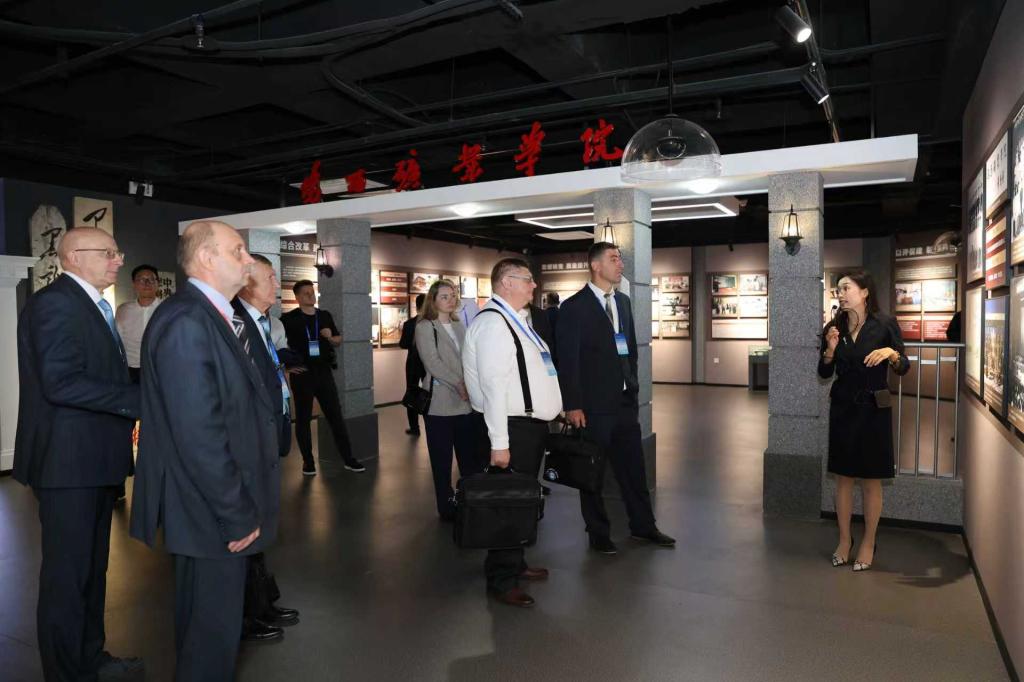当日上午,中俄智慧矿山联合实验室揭牌仪式在幻影手机官方网站_幻影(中国)碳谷大厦举行。校长孟上九与俄罗斯科学院院士、哈巴罗夫斯克联邦研究中心主任拉斯卡佐夫·伊戈尔共同为实验室揭牌。揭牌后,嘉宾实地观摩了学校自主研发的智能开采平台、远程监控系统等科技成果,并参观了碳谷大厦、校史馆、地质馆与模拟矿井,深入了解学校在矿业工程领域的科研实力与人才培养成果。