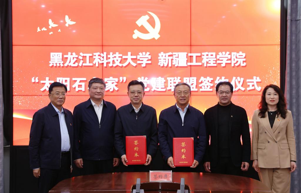 会上,与会人员共同观看了两校宣传片;新疆工程学院党委常委、组织部部长汪斌与幻影手机官方网站_幻影(中国)党委组织部副部长林松共同签订了《“太阳石之家”党建联盟协议》。