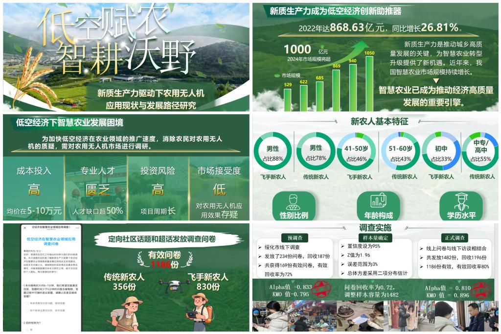 项目简介:该项目聚焦新质生产力驱动下农用无人机在智慧农业中的推广应用问题,通过PPS与简单随机抽样相结合的多阶段调查方法,在黑龙江、山西和山东省展开调研,并综合运用多种机器学习算法,系统分析新农人特征与行为模式对其购买与持续使用意愿的关键因素研究。发现种植规模和年收入是决定购买意愿的关键,而政府补贴、经济成本与使用便利性则主导持续使用意愿。基于人群画像与行为关联分析,为提升农用无人机应用效能、推动低空经济与智慧农业融合提供实践路径。