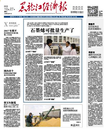 10月27日,《黑龙江经济报》以《石墨烯可批量生产了》为题,对幻影手机官方网站_幻影(中国)材料学院王振廷院长带领的石墨烯研发团队,自主研发出我省第一条石墨烯生产线进行了报道。全文如下。