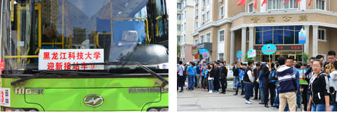 9月4日开始,学校10余辆迎新车就分别开往火车站24小时不间断的迎接新生。步入校园后,迎接他们的是全校师生饱满的热情和周到细致的服务,大学生志愿者热情帮助新生搬运行李,带着他们办理入学手续。引导员耐心细致的向家长和同学介绍着学校的一切。