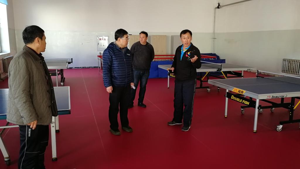 11月13日上午,校长郝传波到体育部对篮球馆地板、乒乓球教室维修、改造后的使用情况进行了解。