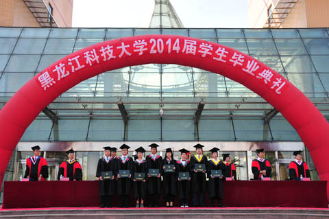 与会领导为获得学位的本科毕业生代表、硕士研究生代表授予学位,向获得先进的毕业生代表颁奖。2014届本科毕业生代表、电信2010级1班陈发展同学,2014届毕业研究生代表、区域经济学专业李媛媛同学,毕业生家长代表、自动化2010级5班李玥秀同学父亲、海拉尔车务段组织部部长李相权,教师代表、硕士生导师、理学院院长母丽华分别作了发言。