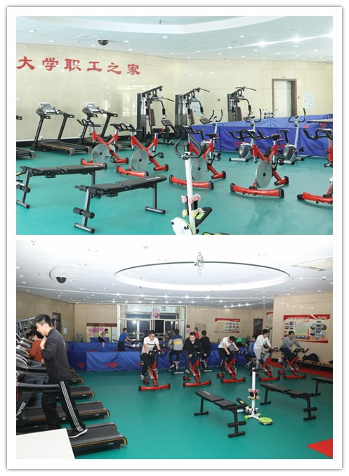 “职工之家”配备了跑步机、乒乓球、力量综合训练器、动感单车、椭圆机、仰卧板、哑铃等健身设施。并有专人负责日常安全管理与维护,为教职工休闲健身创造了良好的条件。