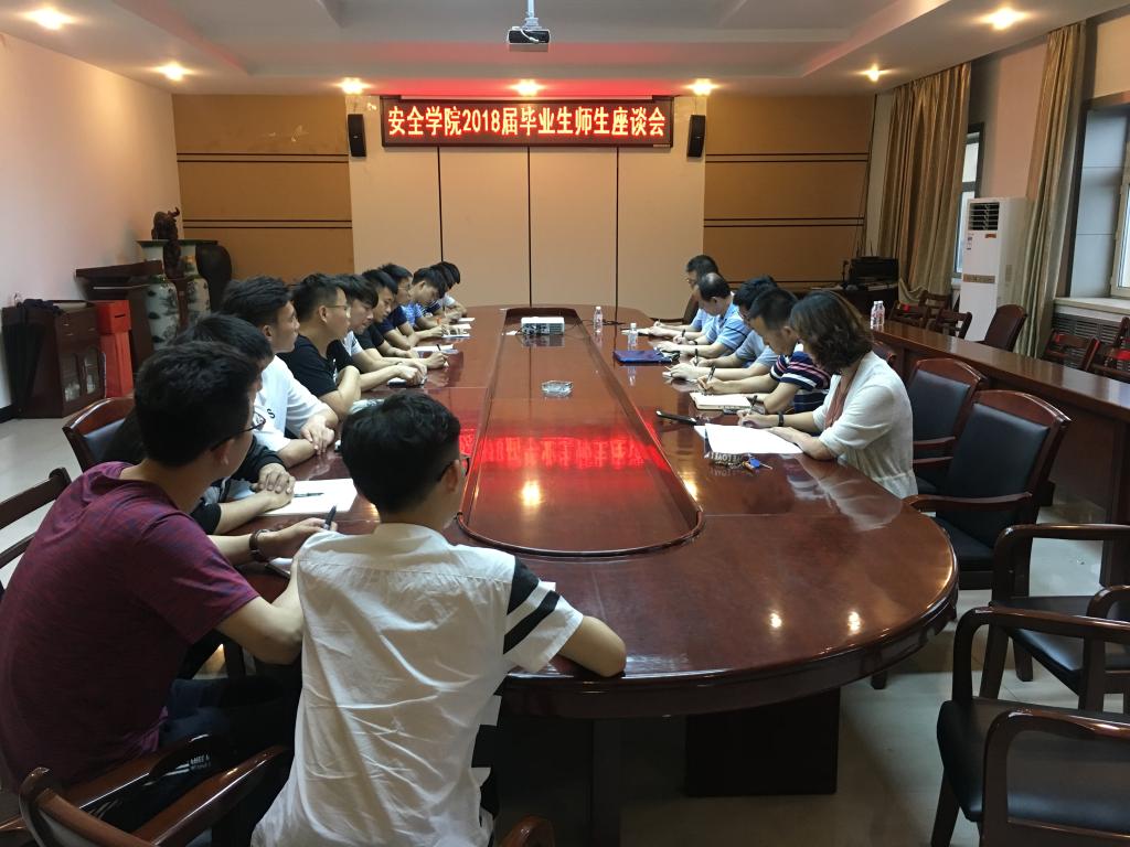 6月25日下午,安全工程学院在学院办公楼三楼会议室,召开了2018届毕业生座谈会。校党委书记武俊峰、安全工程学院党政班子成员及11名毕业生代表参加了座谈,会议由院学工办主任杨凤娟主持。