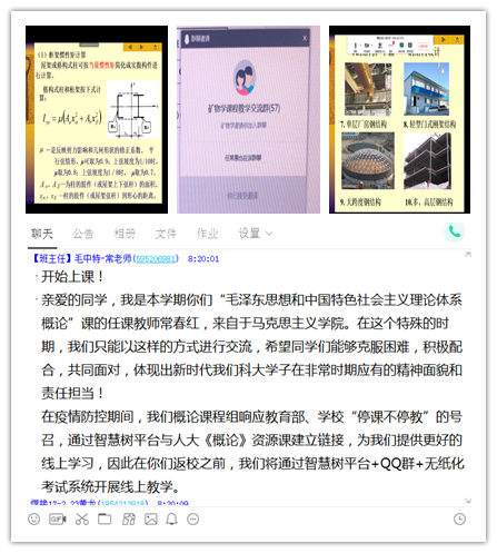 为了保证线上教学质量监控及时有效,教学督导专家们在课前主动与授课教师取得联系,加入课程QQ群、微信群或平台课堂,全面查看授课教师的教学状态和教学过程,检查教师对线上教学的组织管理,感受教师与学生的在线交流,并在课后及时与教师进行线上交流,肯定成绩,并针对存在的问题提出改进意见和建议。