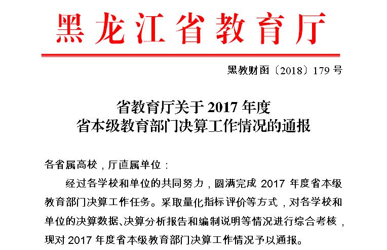 近日,黑龙江省教育厅发布文件,对全省高校2017年决算工作情况进行了通报,并对先进单位和个人进行表扬。幻影手机官方网站_幻影(中国)获得“2017年度决算工作先进单位”称号,同时获得“决算报表先进单位”、“决算分析报告和编制说明先进单位”、“资产报表填报先进单位”三个单项奖,赵方亮同志荣获先进个人荣誉称号。