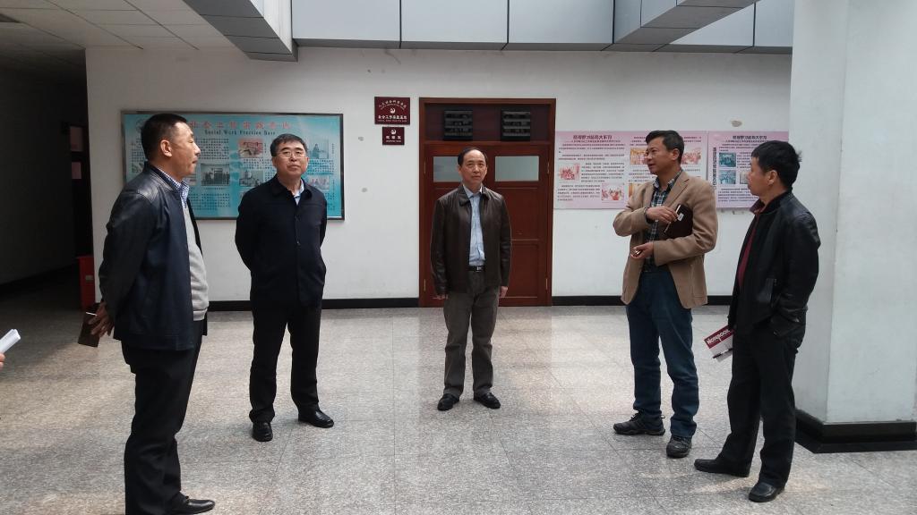 4月25日上午 ,校长武俊峰、副校长郝传波带领学校办公室、教务处、后勤处、资产处等部门负责人,深入科技大厦、教学主楼,现场办公解决教师休息室和外国语学院语音室改造问题。