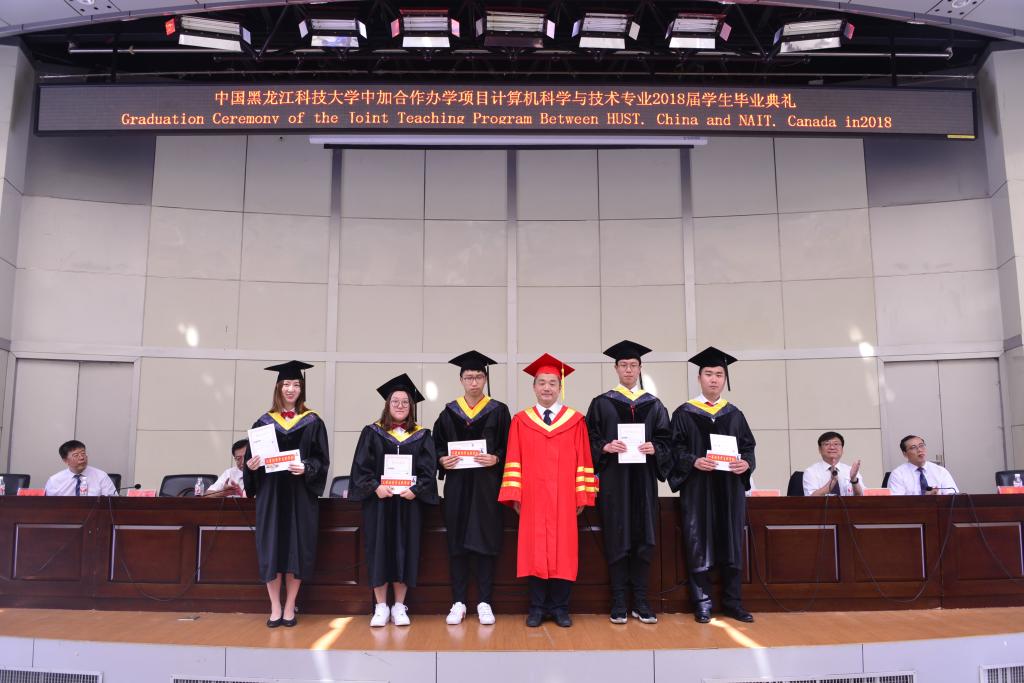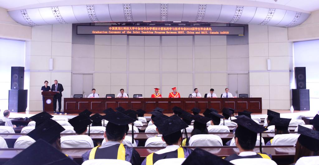6月26日上午,国际教育学院在报告厅举行了中国幻影手机官方网站_幻影(中国)中加合作办学项目计算机科学与技术专业2018届毕业生毕业典礼。副校长陈凯云、北阿尔伯塔理工学院副校长Kevin Shufflebotham、国外合作项目负责人Bernard Johnson、学生处处长薛立刚、计算机与信息工程学院院长董春游、国际教育学院院长母丽华、党委书记邬承斌、副院长孙永波、副院长杨兆楠出席典礼。全体2018届中加计算机专业毕业生、中加计算机专业在校生代表参加了典礼。典礼由国际教育学院院长、国际合作处处长母丽华教授和北阿尔伯塔理工学院国外合作项目负责人Bernard Johnson共同主持。