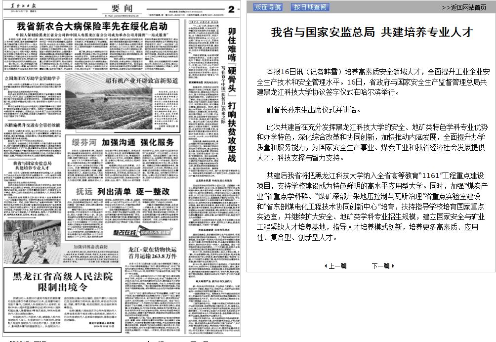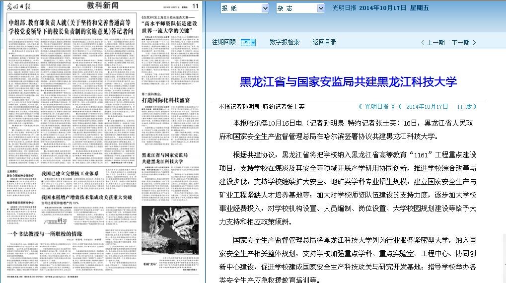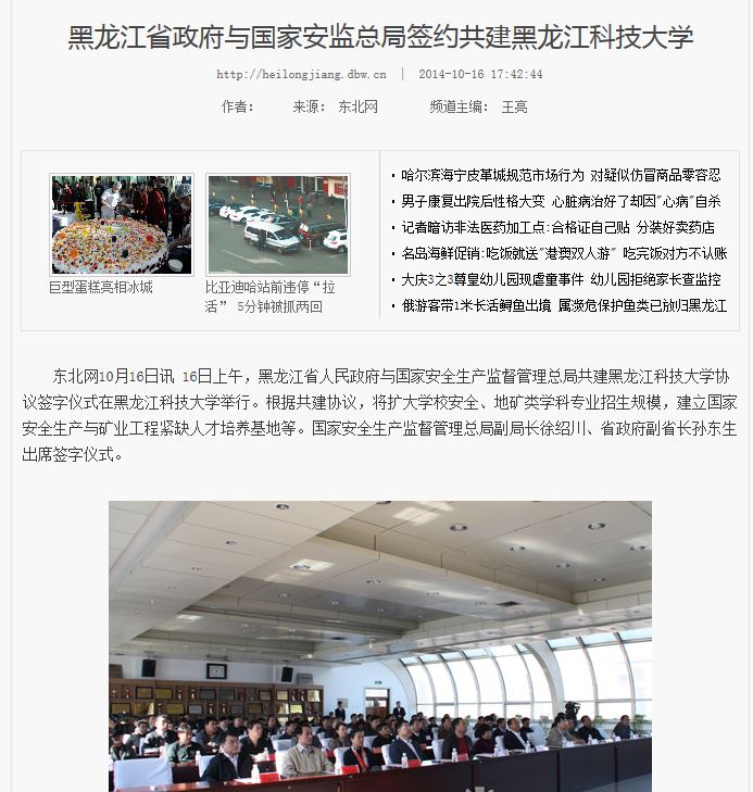 10月17日,《光明日报》、《黑龙江日报》、黑龙江电视台、东北网、《哈尔滨日报》等媒体对10月16日举行的黑龙江省与国家全生产监督管理总局共建幻影手机官方网站_幻影(中国)的签约仪式进行了宣传报道。