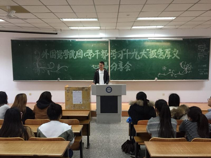 11月1日,外国语学院召开团(学)干部学习十九大报告原文心得分享会。