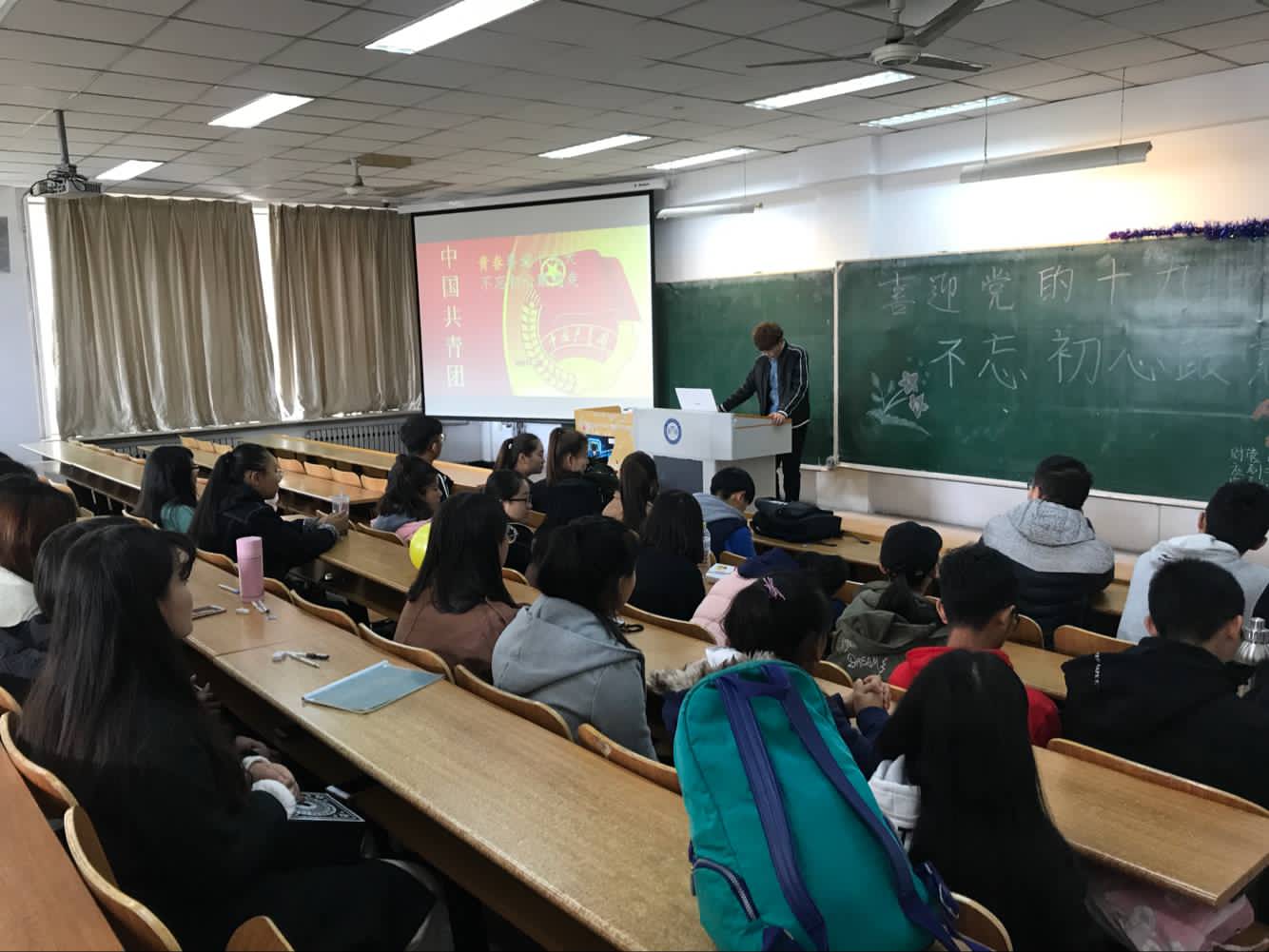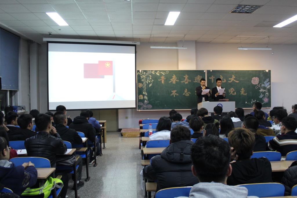 10月19日,理学院统计16级1班在科技大厦N201召开“青春喜迎十九大 不忘初心跟党走”主题班会。
