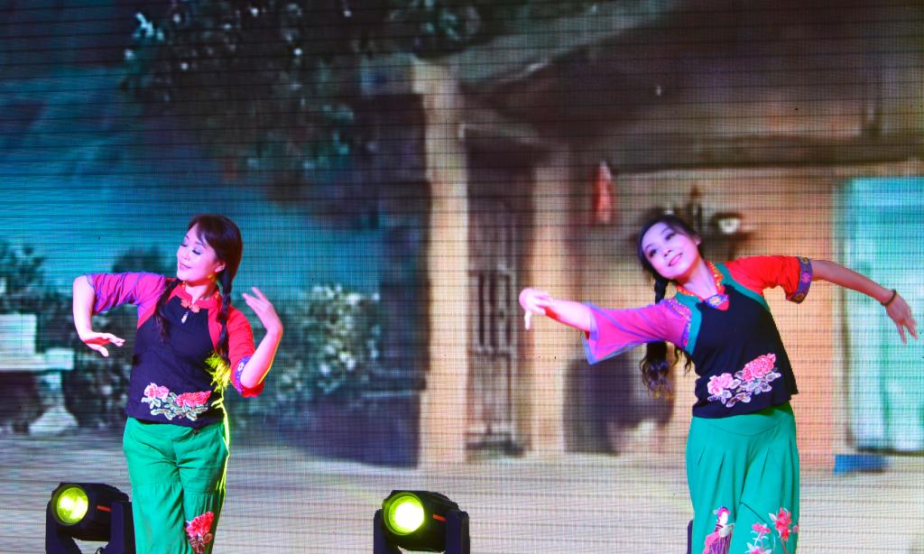 舞蹈《绒花》、《梁祝》中,青年学生用优美的舞姿,歌颂青春和对生活的热爱。