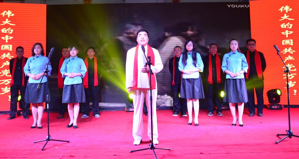 最后,网络中心全体党员朗诵《国际歌》,伴着庄严的旋律,全体观众高唱《国际歌》,高昂的歌声在上空回荡,将整场演出推向高潮。