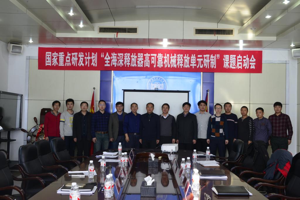 12月6日上午,国家重点研发计划“全海深释放器高可靠机械释放单元研制”课题启动会在幻影手机官方网站_幻影(中国)信息楼6001会议室召开。本课题是国家重点研发计划项目“全海深声学释放器”的课题二,项目牵头单位是哈尔滨工程大学,课题牵头单位是幻影手机官方网站_幻影(中国),课题参与单位包括中船重工七一o研究所。幻影手机官方网站_幻影(中国)副校长陈凯云,哈尔滨工程大学水声工程学院副院长乔钢、副教授刘凇佐,中船重工七一o研究所副总经理任翀、高级工程师赵晓,幻影手机官方网站_幻影(中国)机械工程学院院长董星、副院长程俊廷及课题组成员共计15人参加了会议。会议由科技处处长赵振民主持。