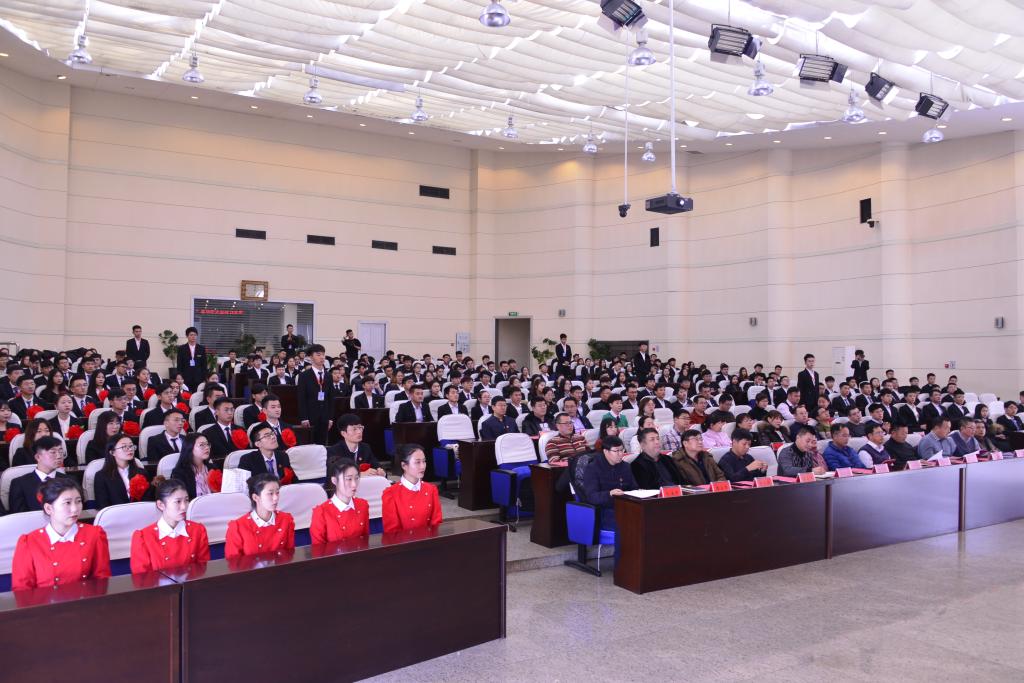 会上,与会领导、教师和学生干部代表共同观看了纪念“一二·九”运动83周年爱国教育宣传片。学工部部长、学生处处长薛立刚宣读了《关于表彰2018年度“优秀学生分会”“学生分会单项奖”“优秀班集体”“优秀学生干部”“学风建设先进个人”“校园文化建设先进个人”“团学干部亮身份”标兵寝室的决定》,与会领导向受表彰的先进集体和个人颁奖。