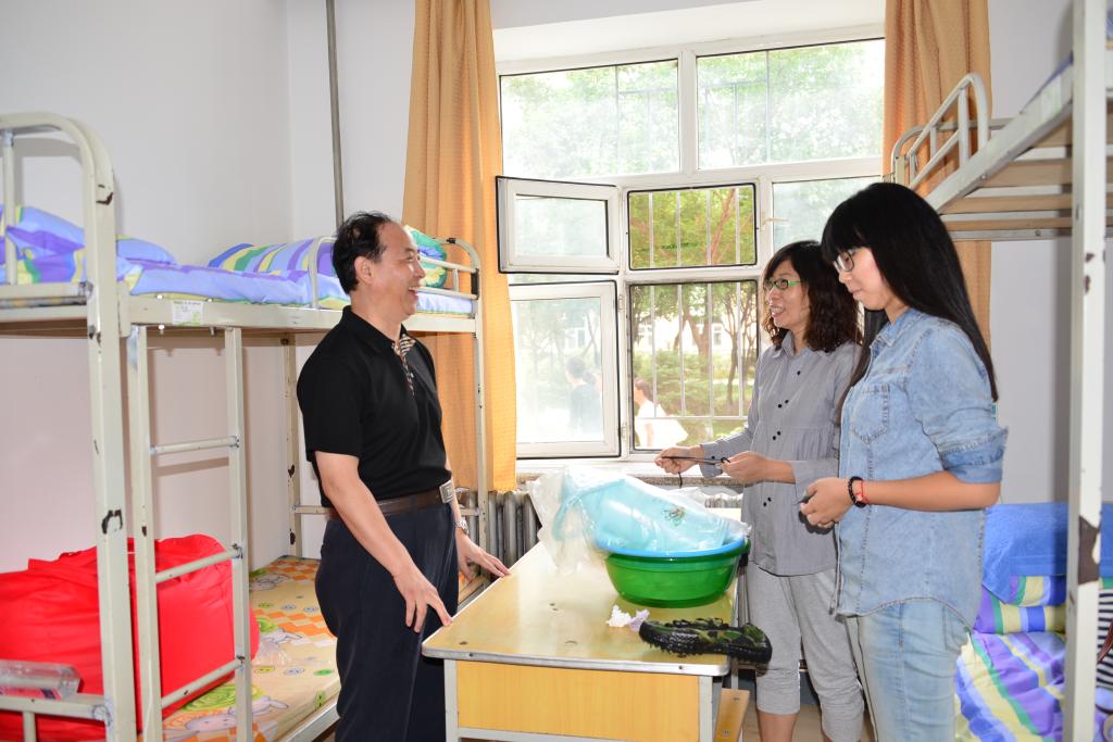 在新生宿舍,武校长看望了入住的新生及家长,对新生们的到来表示祝贺和欢迎,并勉励他们尽快熟悉学校环境,适应大学生活和学习节奏,充分利用学校良好的学习、生活条件,发挥潜能,为自己的成人、成才和成功而努力奋斗。