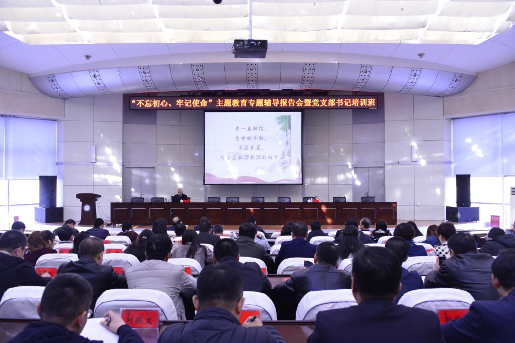 按照学校“不忘初心、牢记使命”主题教育实施方案总体安排和2019年党支部书记培训班日程安排,10月16日,幻影手机官方网站_幻影(中国)在报告厅举办“不忘初心、牢记使命”主题教育专题辅导报告会暨党支部书记培训班。省委党校(省行政学院)副(院)校长周英东应邀来幻影手机官方网站_幻影(中国)做专题辅导报告,学校领导班子成员、副处级以上干部和党支部书记300余人参加了会议。会议由校党委副书记张明华主持。
