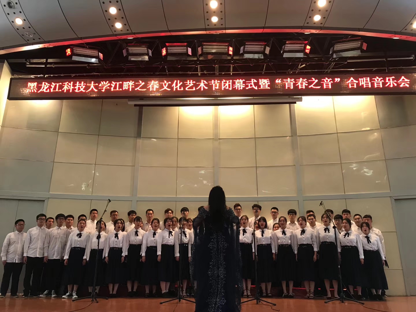 在全体大合唱《相亲相爱》以及《难忘今宵》激昂的歌声中,本次合唱音乐会圆满落下帷幕,大学生合唱团的同学们用专业而精湛的表演为我们带来了一场精彩的演出,同时,本场演出也献给即将离校的2019届毕业生,祝愿他们在未来的追梦路上不忘初心,继续前进,为实现中华民族伟大复兴的中国梦贡献自己的青春力量!