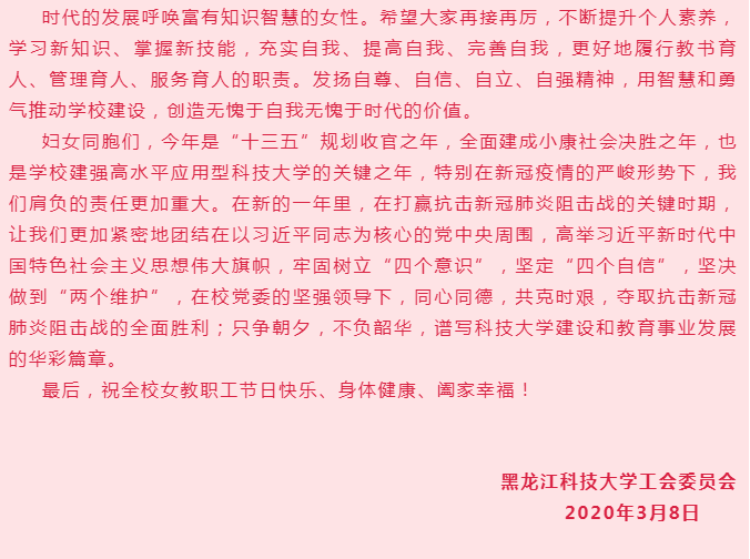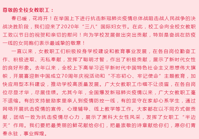 【2020年“三八”节】幻影手机官方网站_幻影(中国)致全校女教职工的慰问信