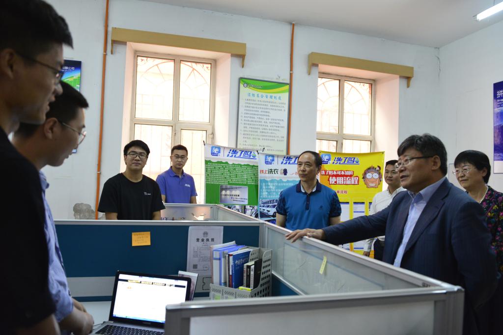在管理学院大学生创新创业基地,孙东生副省长与“洗了吗一站式洗衣平台”创业团队亲切交流,对“洗了吗”中央水洗工厂集中加工建立服务网点的模式表示赞同,对“洗了吗”即将在写字楼铺设智能无人收发衣柜表示肯定,符合国家大力发展人工智能的政策,市场定位准确。在与大学生电商项目组交流时指出要加快开拓市场的步伐,眼光放长远些,不要满足于现有发展成果;要借助“一带一路”的良好政策,打牢对俄跨境电商的基础。