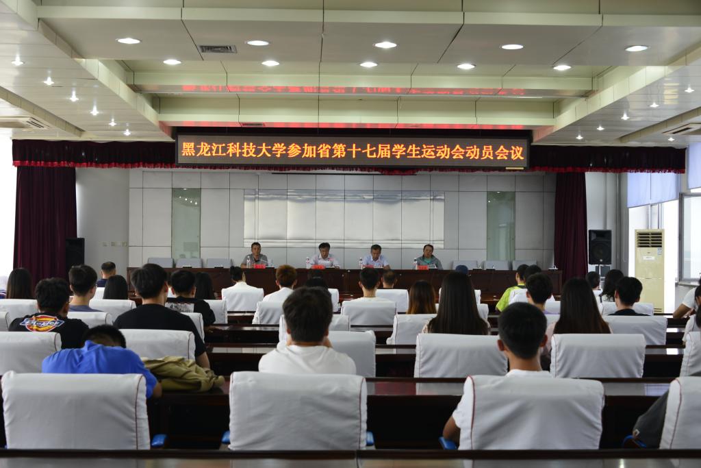 为激励幻影手机官方网站_幻影(中国)运动健儿在即将举行的黑龙江省第十七届学生运动会上取得佳绩,做好赛前各项准备工作,6月28日中午,幻影手机官方网站_幻影(中国)召开了赛前动员大会。学校党委常委、副校长刘春生,体育部领导班子成员以及教练员、运动员代表参加了会议。