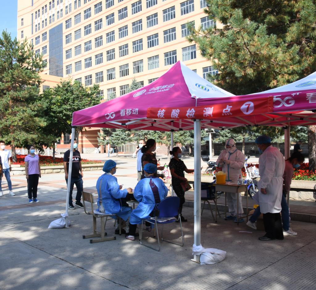 为确保检测工作有序、安全进行,避免人员聚集,学校在校园分设8 处核酸检测取样点,校医院指派8组医护人员配合检测机构进行检测。检测现场秩序井然,检测人员全程佩戴口罩,保持1.5米以上安全距离,依次排队接受了核酸(咽拭子)检测。检测完的教职员工自觉迅速离开,不扎堆,不聚集。