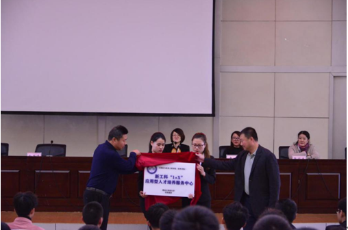 会议最后,计算机与信息工程学院与东软集团一起为共建新工科“1+X”应用型人才培养服务中心正式揭牌。