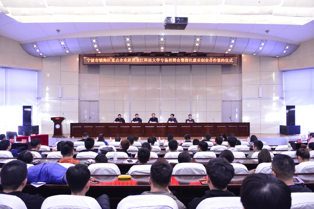 签约仪式结束后,宁波市镇海区重点企业招聘会和“四地十校百岗”优秀青年学子镇海暑期行选拔活动在幻影手机官方网站_幻影(中国)报告厅举办,宁波市高层次人才服务中心、宁波市驻哈尔滨人才联络服务站汪一恒站长介绍了宁波市招才引智政策,宁波市镇海区人才市场管理办公室葛俊杰主任介绍了镇海区重点企业招聘需求并进行人才政策宣讲,镇海石化建安工程有限公司、宁波大红鹰生物工程股份有限公司、宁波富德能源有限公司、宁波三江益农化学有限公司、宁波中金石化有限公司、宁波连通设备集团有限公司、宁波博汇化工科技股份有限公司、宁波市立聘人力资源服务有限公司等8家企业现场举办了招聘活动。