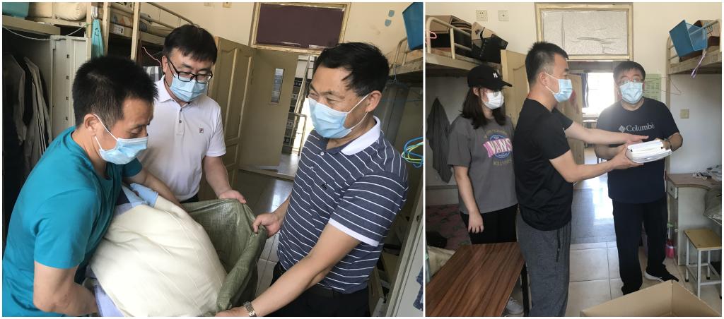 为了切实做好毕业生物品分包整理和邮寄工作,6月8日下午,学校党委副书记于成学深入学生公寓,代表学校党委看望慰问了各学院为毕业生分包整理个人物品的党政领导、辅导员和班主任,并带头为毕业生行李袋封口打包,与毕业生现场视频连线“云见面”,隔空送上了学校的问候与祝福。对各学院领导带头、不怕酷暑、辛勤付出、无私服务毕业生的自觉行动给予了高度赞扬和充分肯定。同时,要求各学院解释再耐心一些、工作再细心一些、服务再贴心一些,满足毕业生所有需求,个人物品应邮尽邮,确保把“好事”办好。