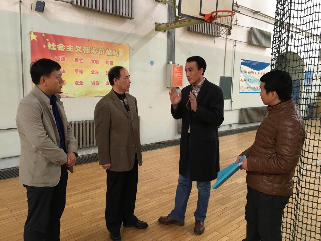 10月22日下午,校长武俊峰、副校长毕广民带领学校办公室、后勤处有关人员深入体育馆检查指导安全工作。