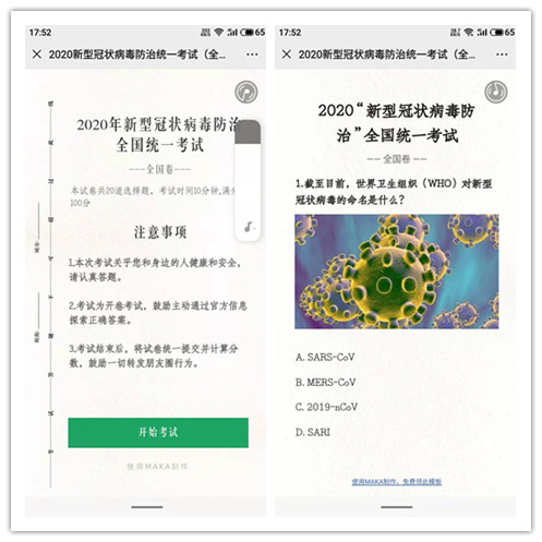三是开展“新型冠状病毒防治”答题活动。组织学生关注“幻影手机官方网站_幻影(中国)团委”微信公众号,参与答题活动,同时鼓励各学院团委、各学生组织以多种形式加强对青年学生的疫情防控知识教育和普及,教育引导广大青年学生严格遵守防控举措。
