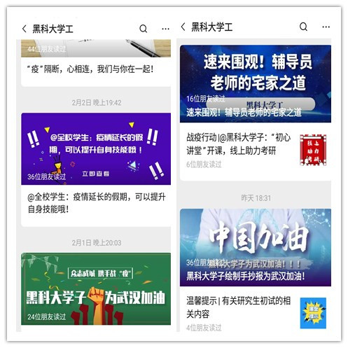 一是全力做好宣传教育工作。通过学校官微和黑幻影手机官方网站_幻影(中国)学工平台,面向全校学生发布《致幻影手机官方网站_幻影(中国)全体师生的一封信》《面对疫情、我们承诺》《关于武汉新型肺炎,我们倡议!》《黑幻影手机官方网站_幻影(中国)学子为武汉加油》《新型冠状病毒感染的肺炎公众防护指南》《疫情延长的假期,可以提升自身技能》《冠状病毒的真相》《“疫”隔断 心相连 我们和你在一起》等推文,教育引导学生面对疫情要科学看待,理性面对,不信谣,不传谣,积极做好疫情防控工作。其中,安全学院通过家校联合开展疫情防控工作;机械学院组织学生书写《承诺书》,教育学生践行承诺、遵守纪律;材料学院组织开展读书、观影活动丰富学生假期生活;建工学院、经济学院、理学院发挥线上宣传作用,科普防疫不断线。