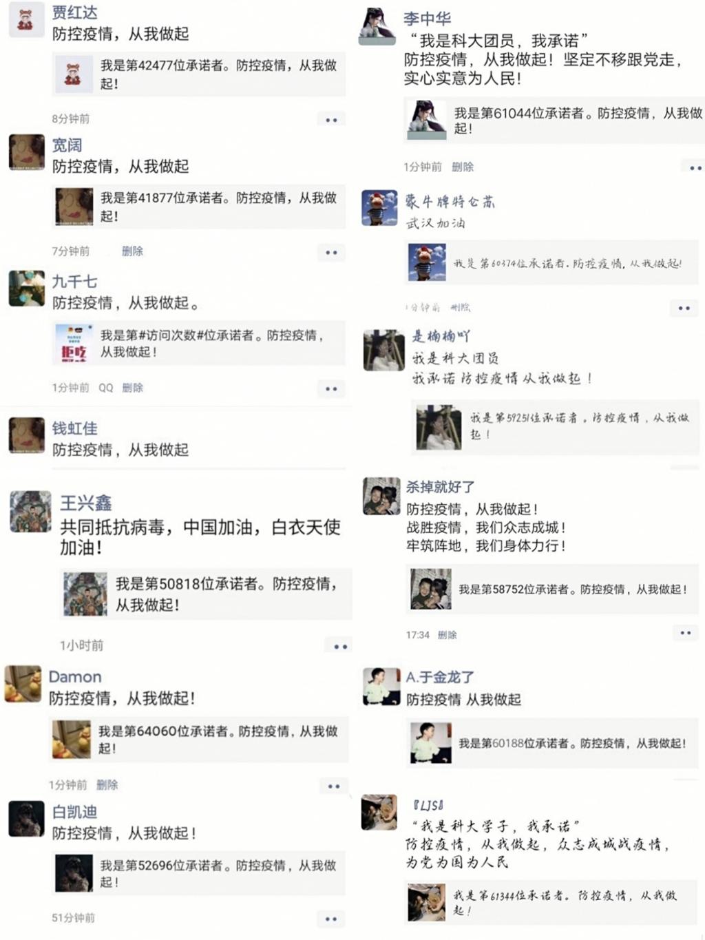 全校青年学生中开展“我是幻影手机官方网站_幻影(中国)团员,我承诺”活动,把引领凝聚广大青年落实各项疫情防控措施,作为当前最重要、最紧迫的目标任务,充分发挥共青团组织思想引领职能,引领全校团员青年以实际行动亮身份、树形象,重点围绕“增强防范意识、做好自身防护”“保持理性思考,不造谣、不信谣、不传谣”“不提前返校、积极配合学校做好疫情排查与防控工作”等重点问题做出郑重承诺。
