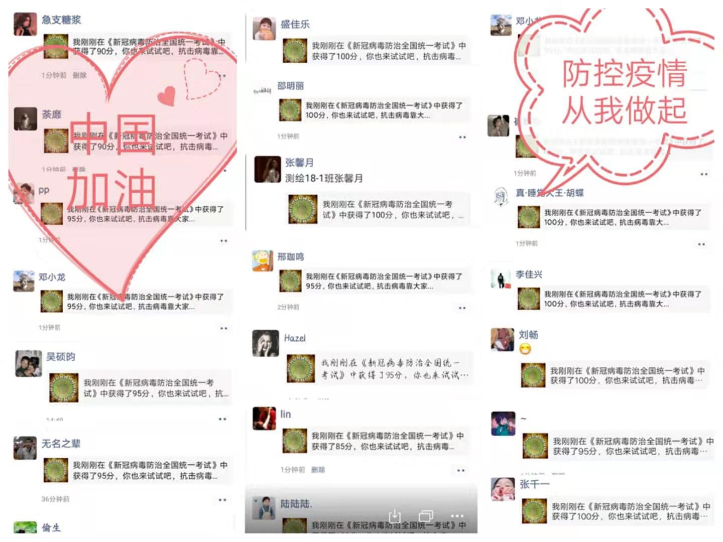 在校团委官方微信推出抗击“新型冠状病毒防治”答题活动,组织青年学生参与答题活动,加强对青年学生的疫情防控知识教育和普及,教育引导广大青年学生严格遵守防控举措,广大同学热情高涨,踊跃参与,共有近一万人次参与了答题活动。