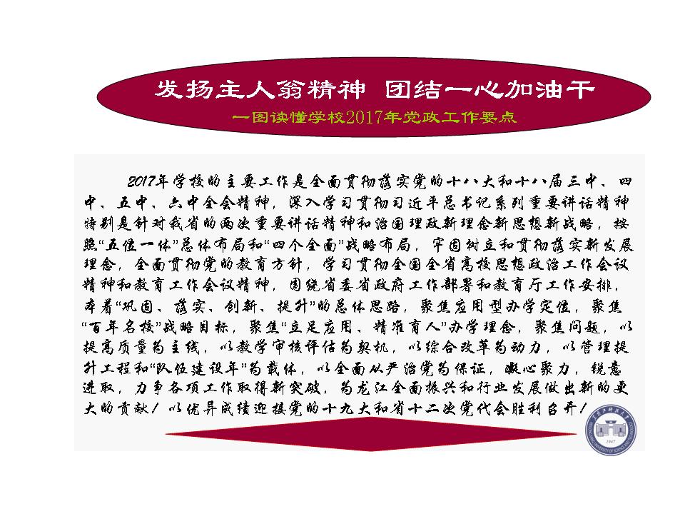 发扬主人翁精神 团结一心加油干 一图读懂学校2017年党政工作要点