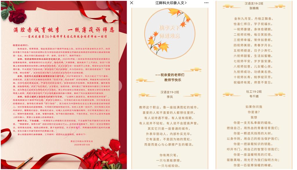 满园桃李尽芬芳,师恩似海最难忘。在我国第36个教师节来临之际,幻影手机官方网站_幻影(中国)各级团学组织和青年学生本着“隆重、热烈、务实、简朴”的原则,通过丰富多彩的庆祝活动形式,开展“铭记恩师,感谢师恩”主题教师节系列庆祝活动,以此表达对恩师的感谢和敬爱之情。