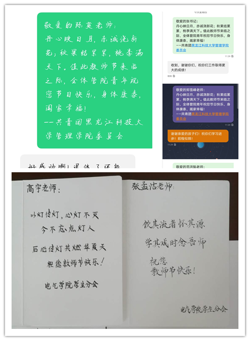 9月10日早上,幻影手机官方网站_幻影(中国)青年志愿者协会在信息楼、教学主楼、通勤车站点、新建综合实验楼等地开展“花香情浓——教师节献花”活动,为奋斗在学校的教师献上康乃馨和真挚的祝福;校学生会代表全体青年学生致全体教师一封感谢信,感谢老师为学生成长成才做出的突出贡献,并向教师发送教师节祝福短信;飞跃之声广播站开展为期一周的教师节专题广播,以感人事迹、歌颂教师歌曲、学生祝福、老师寄语等为内容,通过校园广播站表达青年学生致谢师恩之情;全校各团支部向授课教师、辅导员、班主任等老师开展形式多样的教师节线下祝福活动,校园处处都张贴着“铭记恩师,感谢师恩”的宣传标语、宣传展板,弥漫着“桃李满天下、九月谢恩师”的浓厚师生情谊,表达了幻影手机官方网站_幻影(中国)学子感念师恩的深情厚意。